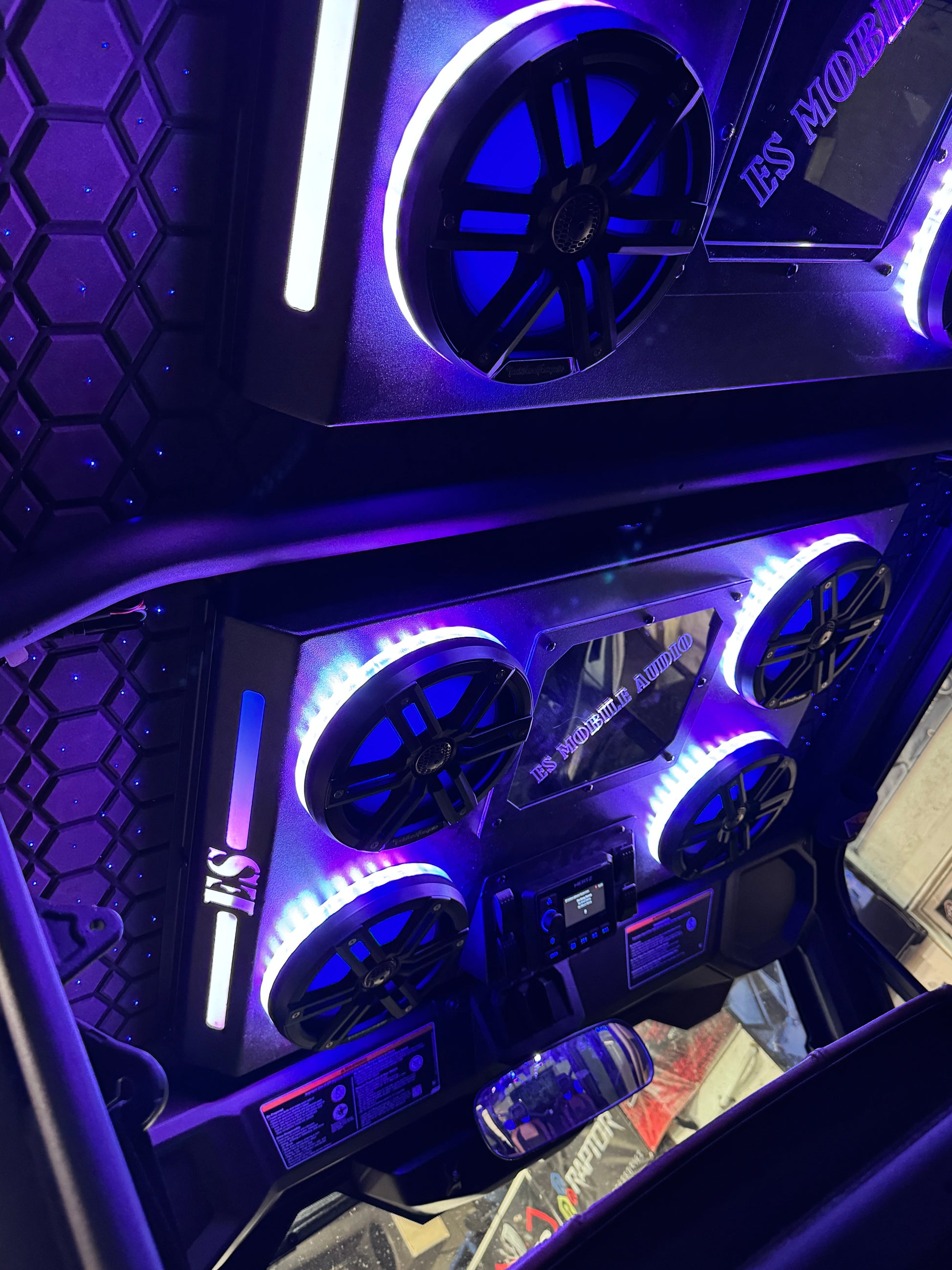 Available as an empty roof or fully loaded audio roof system for the Can-Am Defender HD11. Built to order. Estimated 2–3 week build time before shipping.