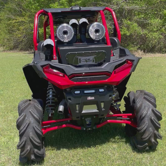 Upgrade your off-roading experience with the RZR 1000 reg cab audio roof. Equipped with powerful 6-8" m2 speakers, pm-2 radio, and an amp, this roof delivers high-quality audio. The RGB controller and lightbars add a customizable touch to your ride, making it a must-have for any adventure seeker.